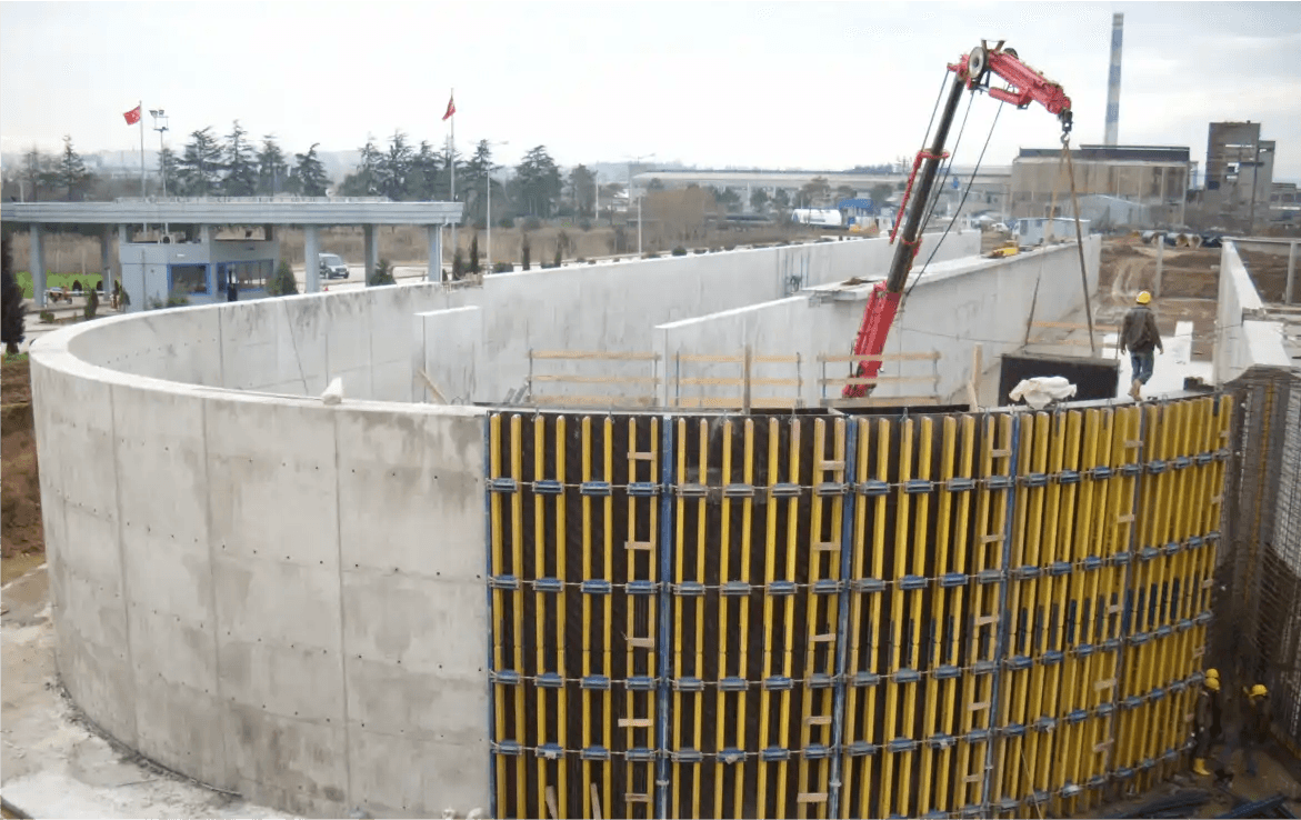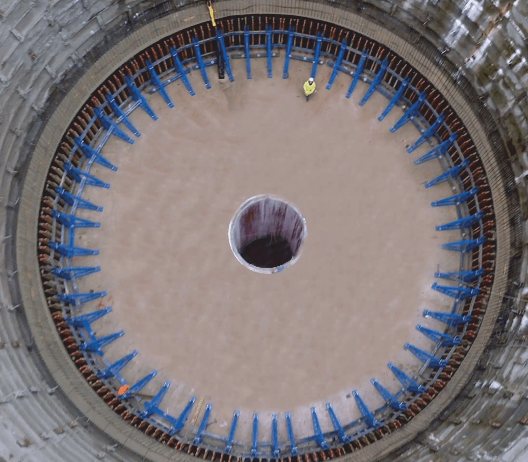 Verstelbare ronde wandbekistingen passen zich eenvoudig aan wanden met verschillende diameters aan dankzij de stelstangen.